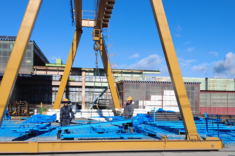 鉄骨のみならず、伐採、整地、基礎工事、木工事など一貫して請け負えるのが当社の強みです。